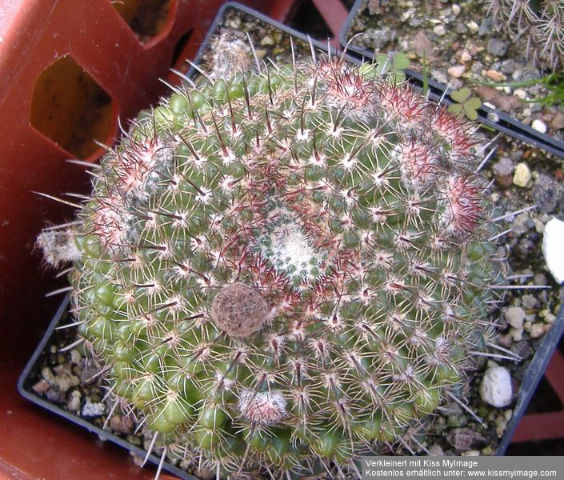 das schöne Wetter am heutigen Nachmittag habe ich genutzt, um einige weitere Pflanzen in neues Substrat umzutopfen und habe bei einer meiner vier bestimmt 20 Jahre alten Pflanzen von N. tabularis WRA 314 festgestellt, dass etwa auf halber Höhe an 3 Stellen Sprosse durch die Areolen herauszubrechen scheinen!